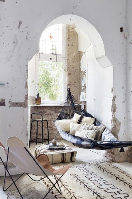 Można na nim siedzieć, bądź leżeć, czytać książkę, oglądać filmy albo po prostu drzemać. W naszej galerii prezentujemy hamakowe inspiracje z Pinterest, zerknijcie: